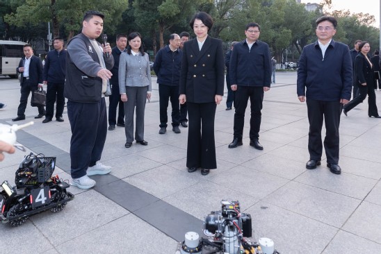 在行知广场,陈平现场观摩“智汇青春”科创作品展。这里正在集中展示BEAT365官网在大学生创新大赛、挑战杯大赛中获国家级、省级奖项等30余个科创精品作品。“交给大家一个任务”,在计算机与人工智能学院展区,陈平看着跳舞的“科目三机器人”对演示学生说:“如果做一台AI春晚,需要一些机器人表演,能不能结合荆楚文化,编排一些动作?”。师生们微笑,点头应答。在外国语学院直播助农项目展台前,陈平详细询问助农细节说:“下次给我发个链接,直播我要来看看!”