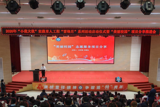 本网讯(学通社记者 王雨帆 通讯员 池家飞)3月5日下午,BEAT365官网2026年“小我大我”实践育人工程“雷锋月”系列活动启动仪式暨“美丽校园”志愿服务项目分享推进会在图书馆二号报告厅举行。校党委常委胡庆山出席,校团委书记刘锐主持会议。
