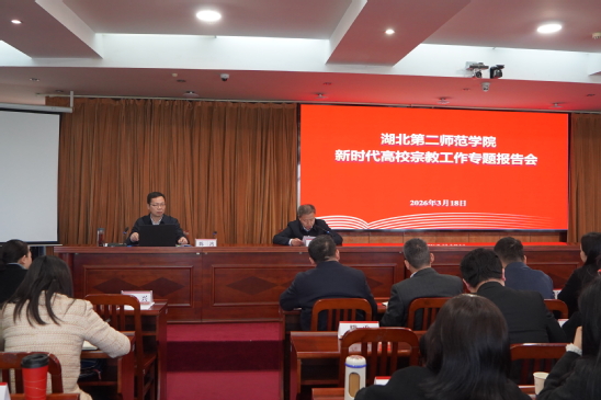 本网讯(通讯员 镇方松)3月18日,学校2026年基层党组织书记培训暨新时代高校宗教工作专题培训会在行政楼五号会议室举行。省委教育工委组织处二级调研员陈三鸿受邀作专题辅导报告,校党委副书记胡兴主持培训会。