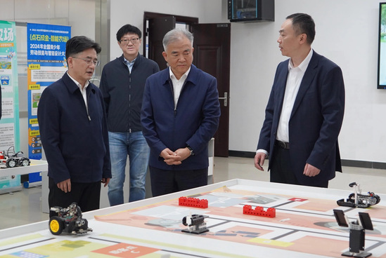 座谈前,孙击翔一行实地考察了学校人工智能科普教育基地、湖北省基础天文科普教育基地、湖北省智能制造产业学院,详细了解学校科普阵地建设、科普资源开发、产学研融合及人才培养等方面工作成效。