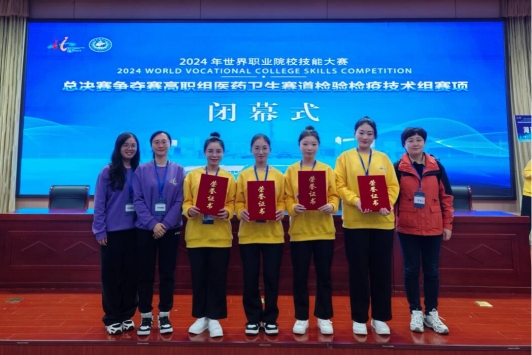 2024年世界职业院校技能大赛总决赛医药卫生赛道检验检疫技术组(赛项),于10月27日至30日在山东临沂举行,学校医学技术学院学生荣获银奖。比赛共有来自全国各地的54支代表队同台竞技,由我校医学技术学院教师钟楠楠博士担任领队,季册娟、曹晋静担任指导教师,杨宝莲、程威、杨潞潞、谢芷若四位同学组成的参赛队,沉着应赛,奋力拼搏,展现了扎实的专业技能和良好的职业素养,最终以总排名第4的成绩荣获银奖。