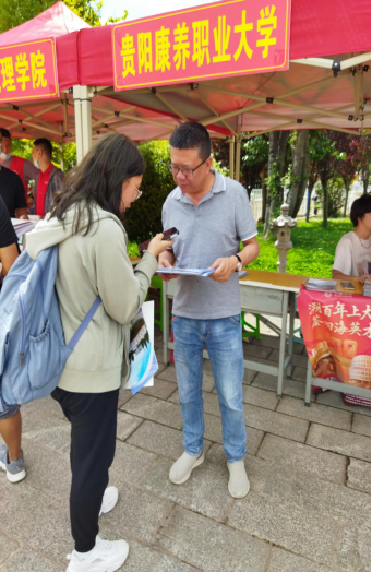 6月26日,招生就业处工作人员赵秋茹、邹纯青赶赴六盘水,在六盘水市实验二中参加高校招生宣传工作。