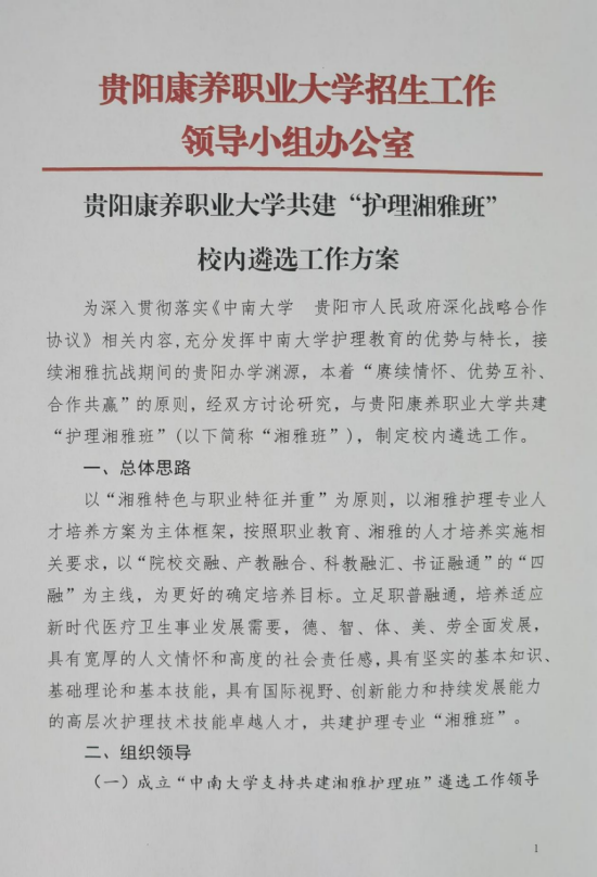 beat365正版唯一官网必一共建“护理湘雅班”校内遴选工作方案