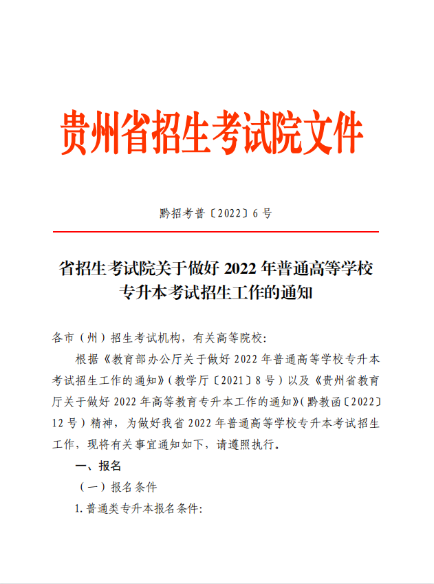 省招生考试院关于做好2022年普通高等学校专升本考试招生工作的通知