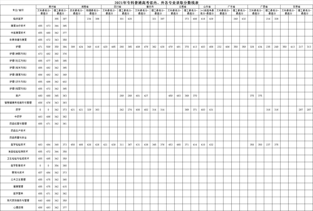 beat365正版唯一官网必一2021年专科普通高考省内、外各专业录取分数线表