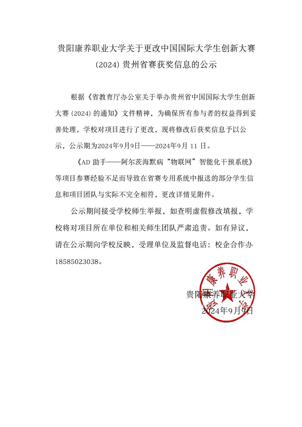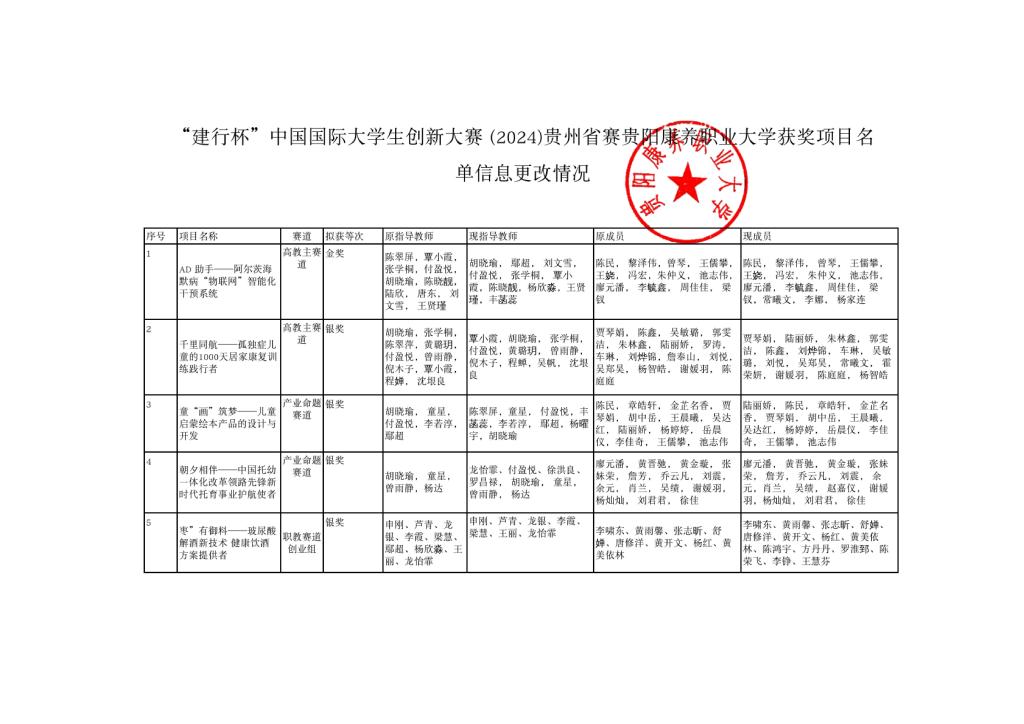 beat365正版唯一官网必一关于更改中国国际大学生创新大赛(2024)贵州省赛获奖信息的公示