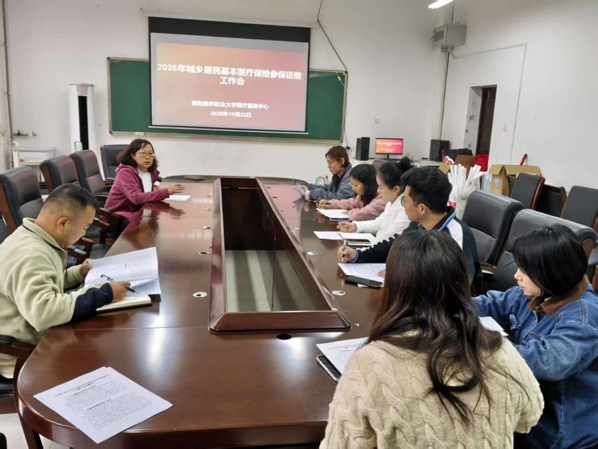 为推进校园2026年城乡居民基本医疗保险参保征缴工作,确保医保惠民政策落地见效,2025年10月23日,医疗服务中心组织各学院相关老师召开2026年城乡居民基本医疗保险参保征缴工作会。