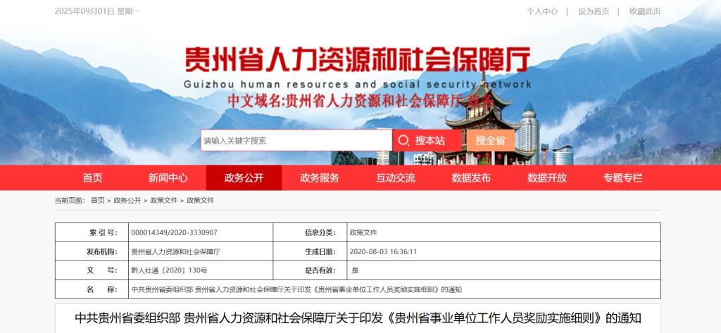 贵州省事业单位工作人员奖励实施细则