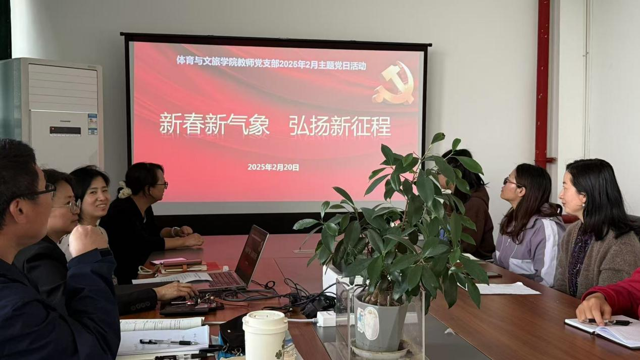 新春伊始,万象更新。为深入学习贯彻党的二十大精神,进一步加强党风廉政建设,激励党员干部在新征程上踔厉奋发、勇毅前行,2025年2月20日,体育与文旅学院教师党支部开展了主题为“新春新气象 弘扬新征程”的党日活动。