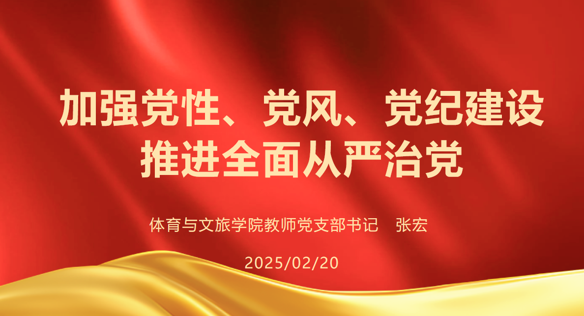 为深入学习贯彻党的二十大精神,扎实推进全面从严治党,2月20日,体育与文旅学院教师党支部开展了以“加强党性党风党纪建设,推进全面从严治党”为主题的党课学习活动。本次党课由支部书记 张宏同志主讲,全体党员参加了学习。