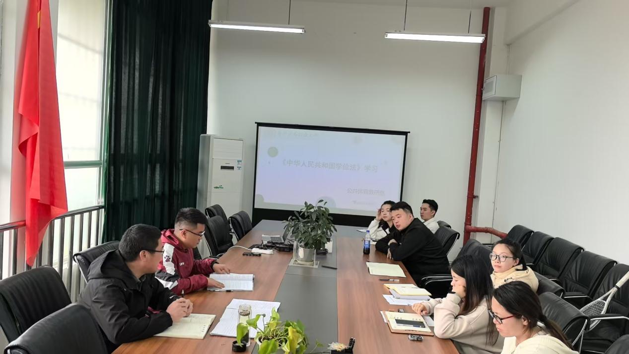 教研室组织全体教师进行了集中学习,由教研室主任领学,对《学位法》的条文进行了逐章逐节的解读。重点学习了学位授予资格、学位授予条件、学位授予程序、学术不端行为界定等与教学工作密切相关的内容。在学习过程中,教师们认真聆听、做好笔记,并就一些关键问题展开了热烈的讨论。例如,如何在公共体育教学中落实学生的学术道德和学术规范教育,如何确保学生在体育相关课程学习和实践中遵守学位法的要求等。