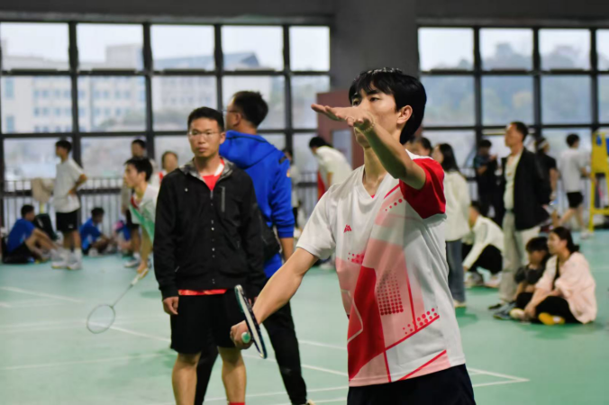 据悉,本次比赛共有来自全省48所高校、1172名运动员参加。赛场上,我校参赛12名学生和各位老师们全神贯注,高远球似箭、杀球有力、吊球巧妙,展现出精湛的技艺。步伐快速灵活,每一次移动都彰显着平时训练的功底。比赛过程激烈精彩,双打项目中队友间配合默契,通过眼神和手势迅速交流,补位及时。男单女单的竞争更是白热化,多局比分紧咬。这次比赛不仅是对选手们实力的考验,也促进了贵州省高校间的体育交流,为校园羽毛球运动发展注入新活力。