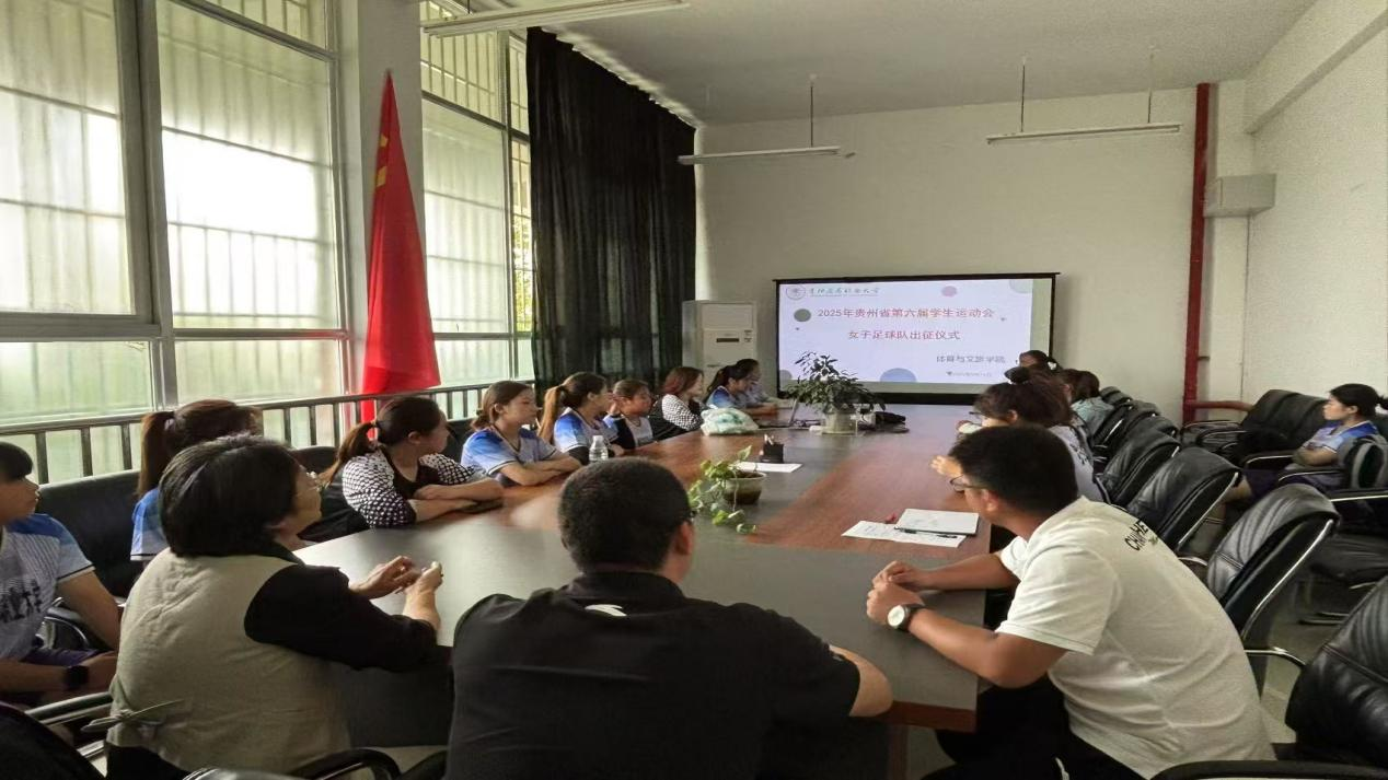 为鼓舞士气、凝聚团队精神,beat365正版唯一官网必一于2025年6月11日隆重举行女子足球队出征2025年贵州省第六届学生运动会仪式。党委书记欧阳宇星、院长张宏、体育教研室主任周天龙、主教练员李清梦、副教练员吴建勤出席仪式,为首次组队参赛的女足队员们加油助威。